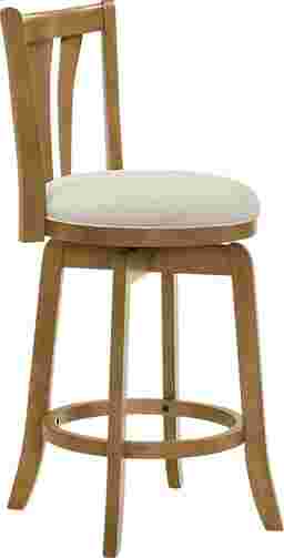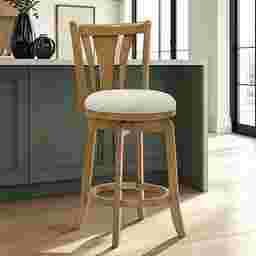 Refined yet inviting, the Arcanen I light brown counter height stool is a stylish companion for your kitchen or home bar. These stools feature plush, rounded cushions, perfect for complementing their wood finishes. Built from solid rubberwood, the Arcanen offer durability with a graceful design that suits both classic and modern interiors. The finishes are expertly applied for a smooth, polished look that enhances the natural beauty of the wood. The smooth 360-degree swivel feature offers effortless mobility, ideal for entertaining or everyday use. Each stool includes a footrest for added comfort and comes ready to enjoy. The armless silhouette offers flexibility and ease of movement. Customer assembly is required.