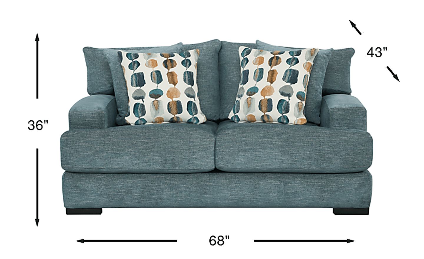 Warm relaxation and long naps are all part of the world of the Archer loveseat, where a soothing silhouette provides the siren call of cozy days and nights curled up with blankets and loved ones. Upholstered in blue woven twill fabric, this transitional piece features padded outside arms and backs, sophisticated track arms and reversible seat cushions for incredible comfort and easy cleaning. Jacquard pillows provide a splash of patterned color while channeled backs add a touch of charm. Contemporary styled block legs in a gorgeous black finish add the perfect final touch of contrast. Upholstery: 80% polyester, 20% rayon. Cleaning Instructions: Use water based cleaning agents or foam.