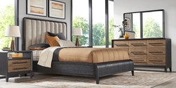 Uniquely extravagant yet quietly reserved, the Archer Grove bed is a seamless blend of luxury and downhome comfort with a Zen-like calming aesthetic. Modern in style, this piece is constructed of elm veneers with a lacquer finish. The bed's upholstered headboard features provocative vertical channeling framed by the contrasting rich black color of the rest of the bed's frame. Mattress and foundation (if required) sold separately.