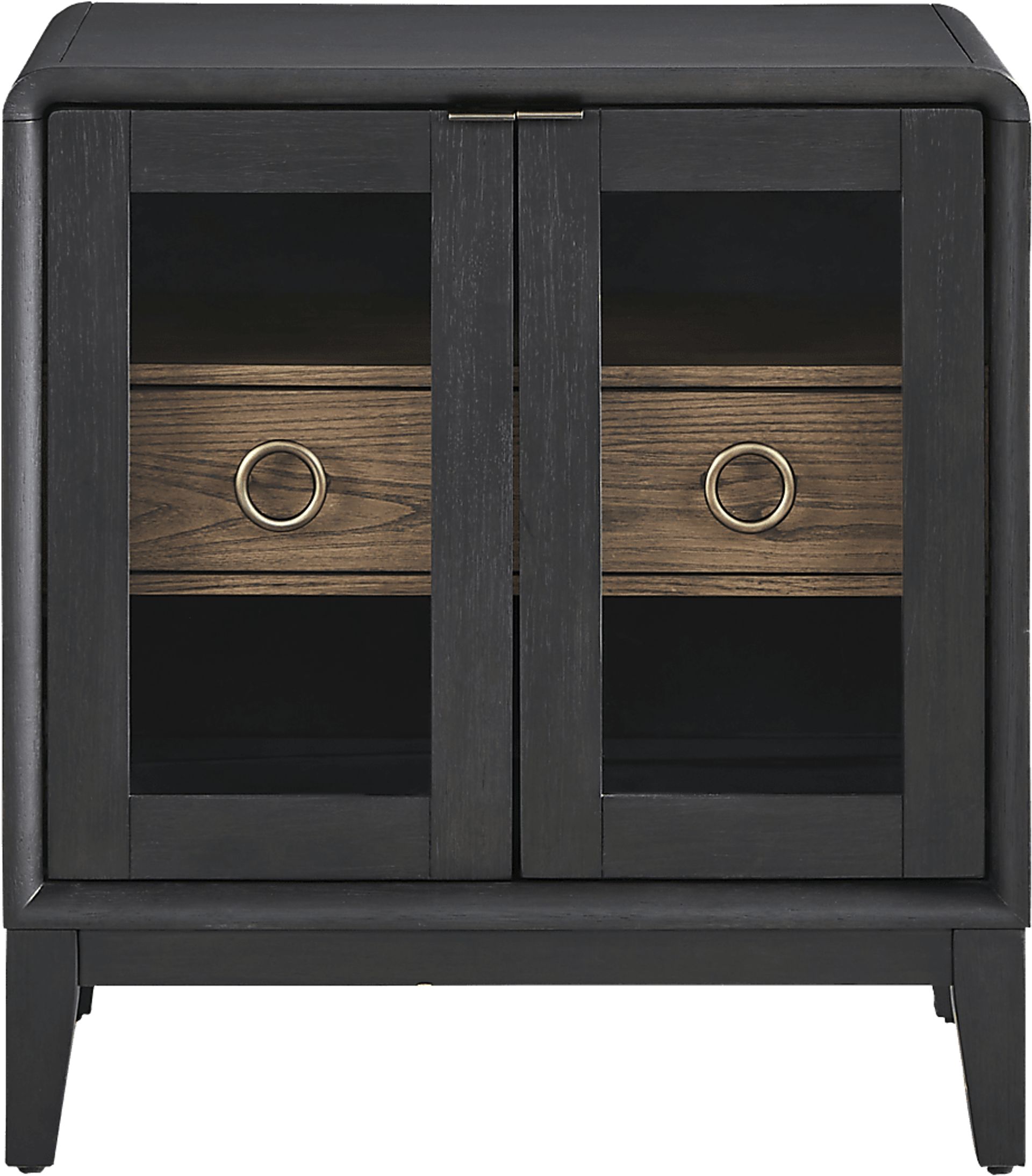 Yes, this piece is specifically designed to balance hidden storage with display space. It features a unique beveled glass door that opens to reveal two interior shelves, perfect for organized book storage or decorative accents. Above the shelves, a single drawer provides a private "hidden" space for personal items, helping you maintain a minimalist and Zen-like atmosphere on your bedside.