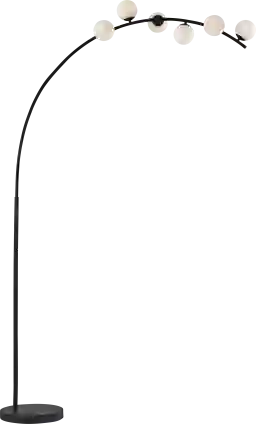 Elevate your decor with the Arden Sea Black Arc Floor Lamp, a masterpiece of contemporary design and innovation. Boasting a striking black finish and matte white opal glass globe-shaped shades, this lamp exudes modern elegance at every angle. Standing tall at 78 inches with a reach of 48 inches, it casts a generous glow while making a bold statement in any space. Equipped with a touch smart switch, this floor lamp offers unparalleled control over both brightness and color temperature, allowing you to customize your lighting experience with ease. Illuminate your surroundings with style and sophistication with this floor lamp. Partial assembly may be required.