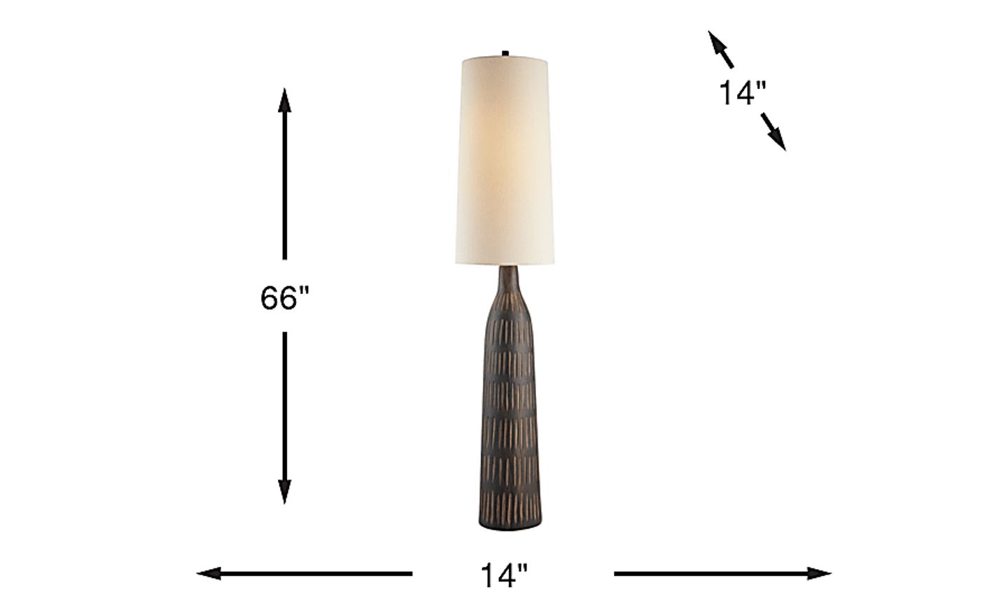Standing at 66 inches tall (5.5 feet), this lamp is perfectly scaled for rooms with standard 8- to 9-foot ceilings. Its height ensures the light source is elevated enough to provide broad ambient illumination while the bottom of the 14-inch drum shade typically sits near eye level when you are seated, preventing direct glare.