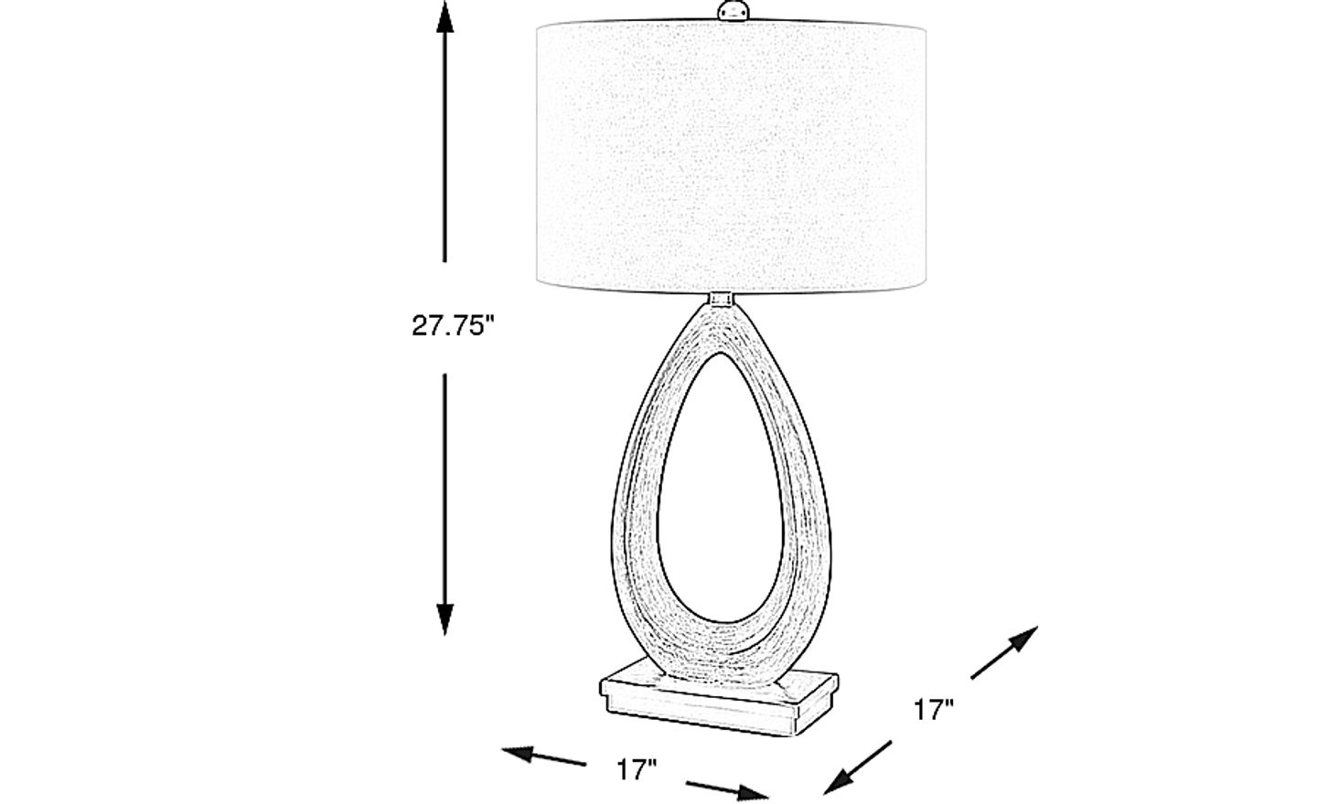 With a shape inspired by the first drop of rain falling from a summer shower, the Ardwick Alley table lamp offers a unique and modern look that's impossible to resist. Featuring a clean design, reminiscent of a teardrop, this lamp is crafted from cast resign and has the appearance of faux wood. The drum shade in a soft cream color adds a magnificent final style detail. The lamp, with an on/off switch, can accommodate up to a 100 watt bulb (not included).