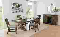 To maintain the textured wood finish, we recommend regular dusting with a soft, dry cloth. For the upholstered seats, our general care guidelines suggest prompt spot-cleaning of spills with a clean, damp cloth and a mild water-based cleaning solution. Avoid using harsh chemicals or abrasive cleaners, as these can damage the protective finish of the wood and the integrity of the fabric fibers.