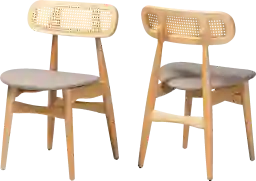 Compose an arrangement of traditional refinement in your space with the charming Argilla light brown side chair, set of 2. This mid-century piece consists of a sturdy wood frame embellished with woven rattan. The rounded seat is padded with plush foam and upholstered in soft fabric for superb dining comfort while the curved backrest provides a smooth embrace. The Argilla features tapered legs for excellent stability and support in sleek design. Evoking classic elegance, the Argilla adds rich character to any occasion. Customer assembly is required.