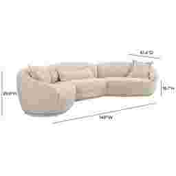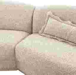 Boucle is an excellent choice for warmer, humid climates because the looped yarn construction allows for better airflow and breathability than dense materials like heavy velvet or thick leather. The light beige upholstery also reflects natural sunlight, which helps prevent the furniture from absorbing excess heat in bright, sun-drenched rooms common in southern coastal regions. To preserve the fabric, we recommend keeping the sectional out of direct, prolonged sunlight to maintain the integrity of the beige hue.