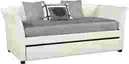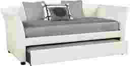 Turn your home office, or any other room, into a guest room with the space saving Ariana daybed. It is upholstered in chic white Ultrahyde for a rich leather look. The slide out trundle drawer is ideal for an extra mattress that doubles the sleeping space (mattress not included). Customer assembly required. Mattress and bedding not included.