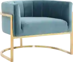 Trend-setting colors and metal detailing make the Arietta accent chair the new must-have. Fabulously chic from any angle, with blue velvet upholstery and stainless steel gold frame, it will no doubt dazzle in any room.