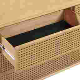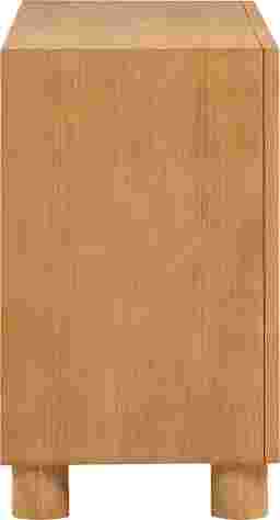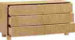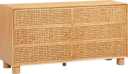 The Arim natural wood dresser delivers a harmonious blend of sculptured forms and organic natural finishes, presenting a sophisticated addition to your bedroom. This handcrafted dresser showcases solid wood cross-hatch patterns on the door fronts, balanced against a clean exterior form, making it a versatile piece that seamlessly fits into any space, emphasizing natural materials. Its clean and smooth push-to-open drawers brings a high-end feel, offering flexibility and enhancing the overall aesthetic of your space without the stress of matching metal finishes. Customer assembly is required.