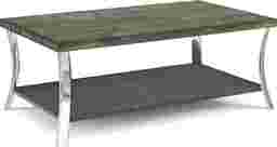 Perfect for entertaining, the Arland rectangular cocktail table boasts an industrial contemporary appeal. With a spacious tabletop and a lower shelf for added storage, the cocktail table features clean lines and sharp edges that enhance its modern feel. This table is crafted of red oak and birch wood solids with a chic brown finish. Curved metal legs add a touch of futuristic chrome hardware to the piece. Customer assembly required.