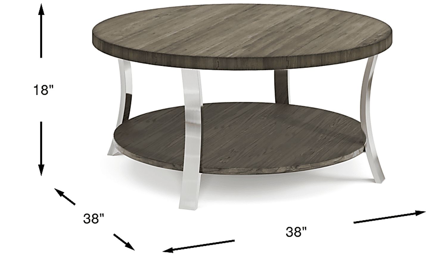Lending an industrial aesthetic, the Arland round cocktail table brings contemporary style to your living room. This table's combination of clean lines and sharp edges create an attractive design that's both modern and natural. A brown finish creates a warm tone, while the curved metal legs add a touch of futuristic chrome hardware to the piece. For additional storage space, this cocktail table features a lower shelf.