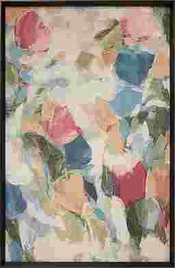 Arlyse is large wall art with an abstract floral design and the subtle texture of an oil painting, a colorful accent for modern home decor. Arlyse is made from cotton and polyester, measuring 59" x 39". Each piece is custom-framed, so dimensions may vary slightly (up to 1").
