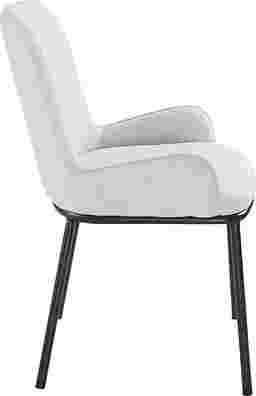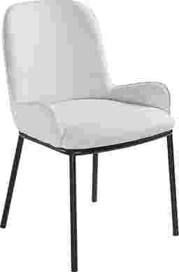 The Armagh gray armchair, set of 2 has flared sides and a semi-high contoured back provide support while the padded cushions add style and comfortable seating. The brushed black metal legs add a regal finish. Featuring soft gray upholstery, padded seat and a unique black metal frame. An ideal addition to your dining room, kitchen eating areas. Customer assembly is required.
