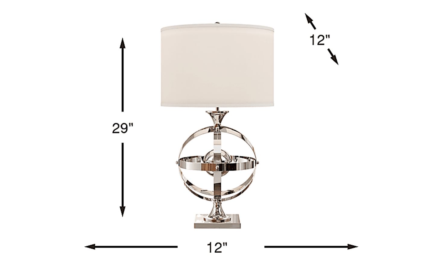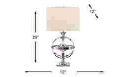 Add a touch of contemporary intrigue to any room in your home with the celestial-inspired Armillary lamp. Topped with a white drum shade, it can accommodate one 150 watt max bulb with a 3-way switch.
