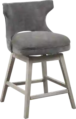The Arrowana37 swivel counter height stool brings a chic combination of comfort and style to your kitchen. This counter stool features a low back and is upholstered in a rich charcoal fabric to create a stunning transitional look. The solid wood legs showcase a light gray finish to complement the upholstery. A pewter nail head trim on the open back adds an elegant touch to the design, while the matte silver metal kickplate on the stretcher protects against everyday wear and tear. Able to swivel 360 degrees with no auto return mechanism, this swivel counter stool beautifully completes any kitchen or dining room. Customer assembly is required.