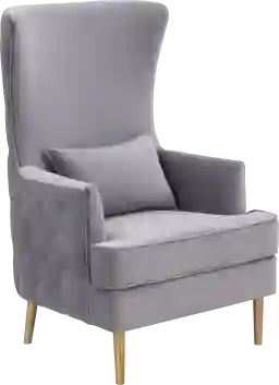 Boasting a high back, rich upholstery and diamond button tufting, the Arrowship gray accent chair adds flair to any room with an authoritative presence. This impressive wingback chair is complemented by brushed gold legs. Customer assembly is required.