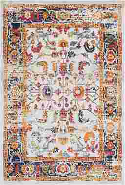 This rug blends the intricate, timeless motifs of a traditional oriental rug with the clean, approachable aesthetic of contemporary farmhouse decor. The ivory background provides a neutral foundation that brightens a room, while the deep, bold colors add a modern edge. This combination allows the rug to act as a bridge between classic and modern furniture styles, providing a grounded, sophisticated feel to any living space.