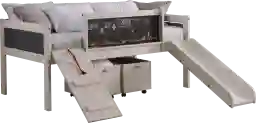 The Artspace white twin Jr. loft bed is an artsy and creative haven with a walk-up ladder and slide to get out of bed and start the day out fun. The chalk board front panel is a place to write clever messages or a canvas for artwork. Two storage drawers are included to organize art supplies, toys, bedding, or clothes. Mattress and bedding not included. Customer assembly required. Ships in 3 boxes.