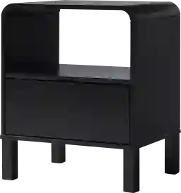 Your new modern marvel has arrived. With its curved top and minimal hardware, this minimalist Artwin nightstand serves both looks and functionality. A single cubby and drawer lend enough storage for your everyday essentials, and its versatile build means you can perch this piece next to your couch or your bed. Its sustainably sourced solid pine wood build and painted finish make this the durable piece that's going to last through all each goodnight and every good morning at your bedside for as long as you need. Customer assembly is required.