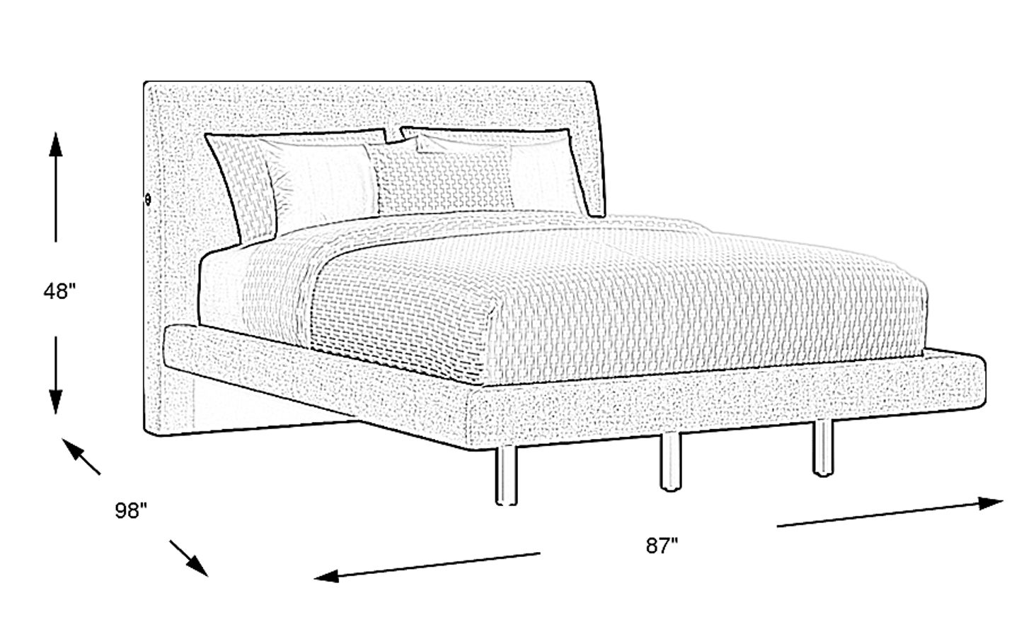 With dimensions of 87"w x 98"d x 48"h, this bed has a substantial footprint, particularly in its depth of 98 inches. For urban apartment dwellers or those with smaller master suites, we recommend measuring your floor plan carefully to ensure ample walking room. However, the low-profile headboard and tapered legs create a "floating" look that adds visual lightness, helping the room feel more open and less crowded.