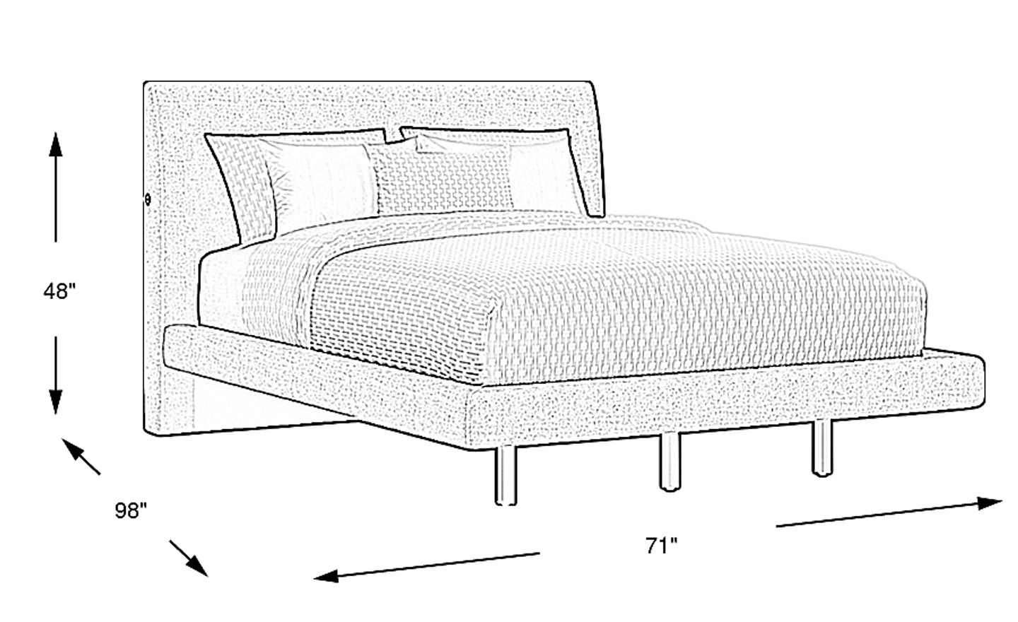 While this bed has a significant depth of 98 inches—nearly 18 inches longer than a standard queen mattress—it is designed to maximize visual space. The platform base uses a "floating illusion" supported by three slender front legs, which creates a sense of openness. This aesthetic prevents the furniture from overwhelming a smaller urban apartment while providing a high-end, contemporary focal point.