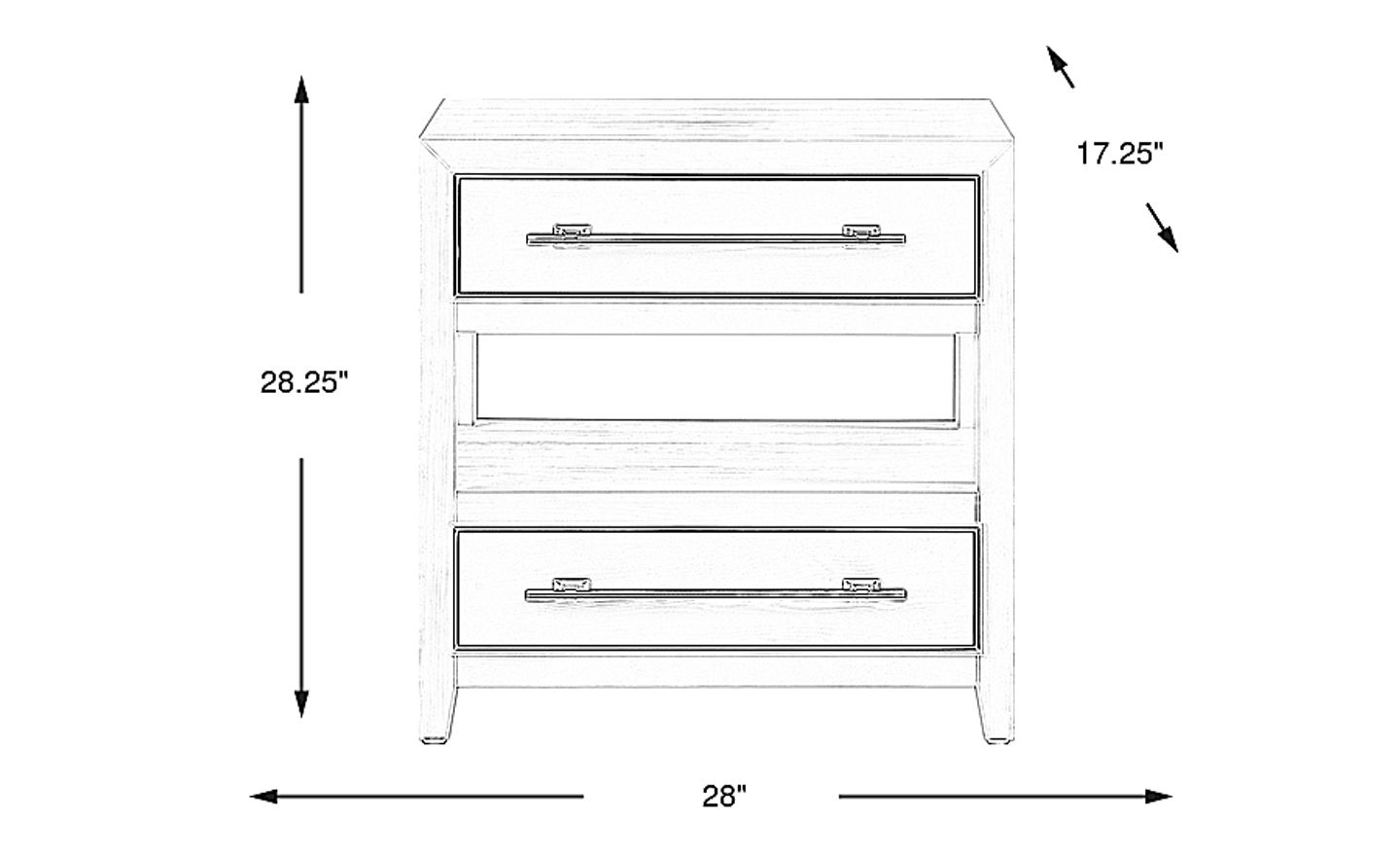 This model features a functional two-drawer design, providing ample concealed storage to keep your bedside organized and clutter-free. The 28-inch width also offers a generous top surface, while the straight-leg design provides an additional 17.25 inches of depth, making it a substantial piece for a primary bedroom suite.