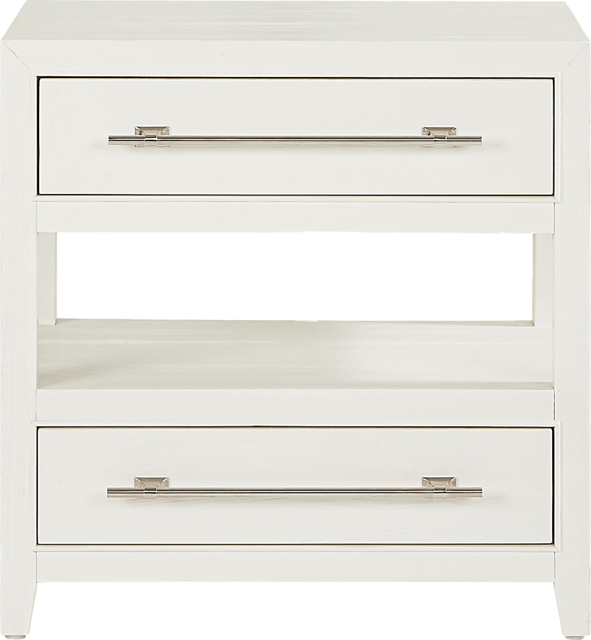 With the softness of a sun-warmed breeze and natural grace of a rustling fan of palm leaves, the Aruba nightstand's subtle notes of beachy style brighten your world every day. Crafted with pine veneers, this two-drawer design dazzles with rich woodgrain texture and elongated metal bar pulls.
