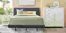 Aruba White 5 Pc Bedroom With Blue King Upholstered Bed