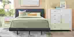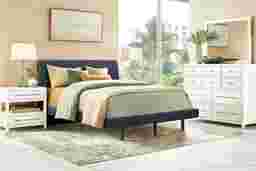 Aruba White 7 Pc Bedroom with Blue King Upholstered Bed