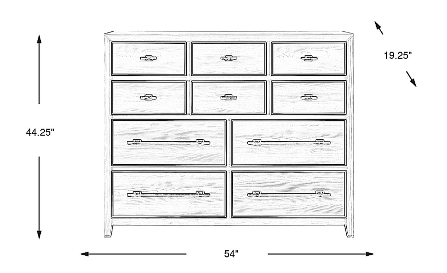 Yes, this dresser is strategically designed for space efficiency. While it provides the storage capacity of a much larger piece through its ten-drawer system, its 54-inch width and 44-inch height allow it to fit comfortably in standard or compact rooms. It is a particularly smart choice for urban apartments or guest rooms where maximizing vertical storage is essential to keep the floor area clear and open.