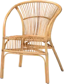 Handcrafted by skilled artisans from natural rattan, this chair offers the inherent strength and flexibility found in high-quality tropical fibers. Because it utilizes natural materials, you can expect unique variations in color and texture, including common hair-like strands that are a hallmark of authentic rattan craftsmanship. The frame is further reinforced with a crisscross base and angled legs to ensure long-term stability and support.