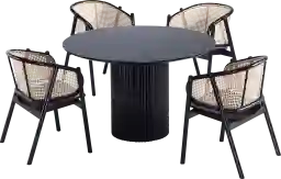 This 5-piece dining set is specifically designed to accommodate up to 4 people. The table features a 47.5-inch diameter, providing an expansive yet intimate surface area that ensures each guest has ample elbow room for a comfortable dining experience.