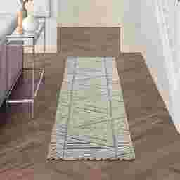 Absolutely. This runner’s 2'3" width is specifically tailored for narrower hallways often found in urban apartments or historic homes. The transitional geometric pattern and light gray-and-white color palette are strategic design choices for smaller spaces; the light colors can make a cramped hallway feel brighter and more expansive, while the wool construction acts as a natural sound-dampener for hard floors.