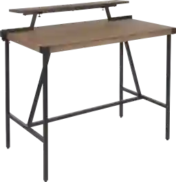 The industrial design of the Asaff stand-up desk is sure to make a statement in your home. With a unique metal geometrical frame, a brown wood-pressed grain bamboo top, and a unique removable shelf, your dining area has never looked so good. Customer assembly is required.
