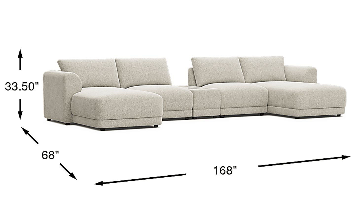 The story of your space is waiting to unfold, its memories, laughs, movie nights and great times, all with the Drew & Jonathan ModularFour living room as the setting you configure to bring it to life. This customizable contemporary seating solution features individual pieces that can be reconfigured endlessly to the shape you need. All-sides upholstery in ash gray chenille offers modern style and comfort at every angle while large, rounded wedge arms invite long sessions of indulgent relaxation. Effortlessly tailor your seating arrangement for everything from game days to sleepovers to everyday relaxation with easy-to-use connectors for rock solid stability. The included media console features integrated bluetooth-enabled speakers, USB-A and USB-C charging, and can connect with up to 5 additional media consoles for an incredible surround-sound experience. Includes left arm chaise, media console, two armless chairs and right arm chaise. Visit a showroom to learn more about individual components and to work with a sales specialist to customize your own configuration today. Upholstery: 100% Polyester.