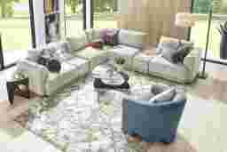 The story of your space is waiting to unfold, its memories, laughs, movie nights and great times, all with the Drew & Jonathan ModularFour living room as the setting you configure to bring it to life. This customizable contemporary seating solution features individual pieces that can be reconfigured endlessly to the shape you need. All-sides upholstery in ash gray chenille offers modern style and comfort at every angle while large, rounded wedge arms invite long sessions of indulgent relaxation. Effortlessly tailor your seating arrangement for everything from game days to sleepovers to everyday relaxation with easy-to-use connectors for rock solid stability. The included media consoles feature integrated bluetooth-enabled speakers, USB-A and USB-C charging, and can connect with up to 5 additional media consoles for an incredible surround-sound experience. Includes left arm chair, two media consoles, two armless chairs, wedge and right arm chair. Visit a showroom to learn more about individual components and to work with a sales specialist to customize your own configuration today. Upholstery: 100% Polyester.