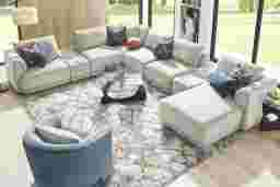 The story of your space is waiting to unfold, its memories, laughs, movie nights and great times, all with the Drew & Jonathan ModularFour living room as the setting you configure to bring it to life. This customizable contemporary seating solution features individual pieces that can be reconfigured endlessly to the shape you need. All-sides upholstery in ash gray chenille offers modern style and comfort at every angle while large, rounded wedge arms invite long sessions of indulgent relaxation. Effortlessly tailor your seating arrangement for everything from game days to sleepovers to everyday relaxation with easy-to-use connectors for rock solid stability. The included media consoles feature integrated bluetooth-enabled speakers, USB-A and USB-C charging, and can connect with up to 5 additional media consoles for an incredible surround-sound experience. Includes left arm chair, two media consoles, three armless chairs, wedge and right arm chaise. Visit a showroom to learn more about individual components and to work with a sales specialist to customize your own configuration today. Upholstery: 100% Polyester.