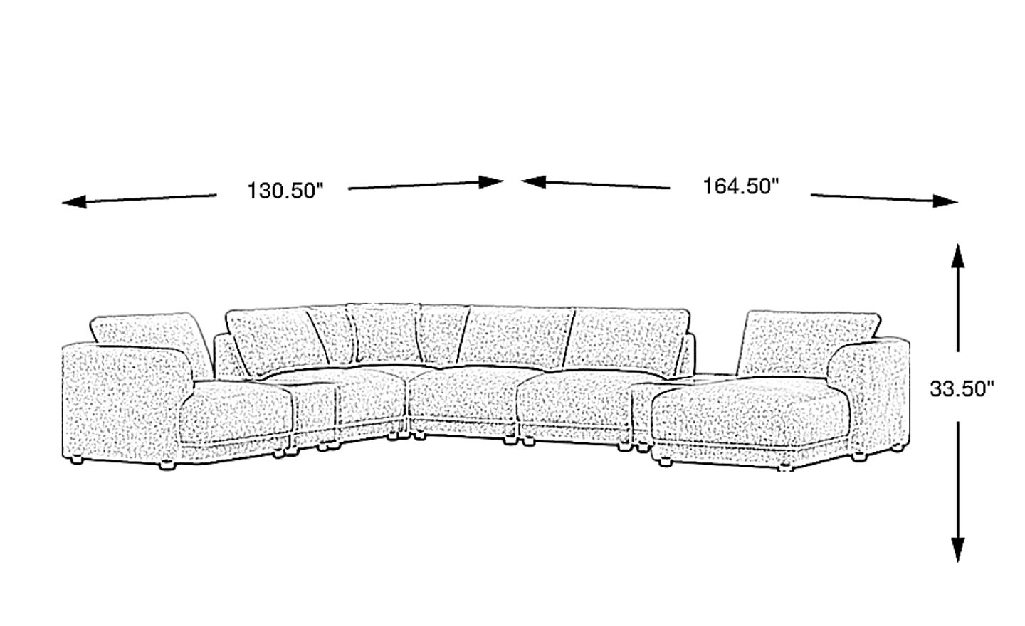 With a total width of 164.50 inches (approximately 13.7 feet), this 8-piece set is best suited for large, open-concept living rooms or spacious suburban family rooms. Its modular nature does allow you to break the set into smaller groupings, but we recommend measuring your floor plan carefully to ensure this grand-scale contemporary piece has ample room for walkways.