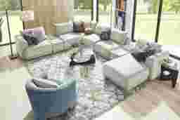 The story of your space is waiting to unfold, its memories, laughs, movie nights and great times, all with the Drew & Jonathan ModularFour living room as the setting you configure to bring it to life. This customizable contemporary seating solution features individual pieces that can be reconfigured endlessly to the shape you need. All-sides upholstery in ash gray chenille offers modern style and comfort at every angle while large, rounded wedge arms invite long sessions of indulgent relaxation. Effortlessly tailor your seating arrangement for everything from game days to sleepovers to everyday relaxation with easy-to-use connectors for rock solid stability. The included consoles feature integrated USB-A and USB-C charging for ultimate convenience. Includes left arm chair, two consoles, three armless chairs, wedge and right arm chaise. Visit a showroom to learn more about individual components and to work with a sales specialist to customize your own configuration today. Upholstery: 100% Polyester.
