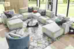 The story of your space is waiting to unfold, its memories, laughs, movie nights and great times, all with the Drew & Jonathan ModularFour living room as the setting you configure to bring it to life. This customizable contemporary seating solution features individual pieces that can be reconfigured endlessly to the shape you need. All-sides upholstery in ash gray chenille offers modern style and comfort at every angle while large, rounded wedge arms invite long sessions of indulgent relaxation. Effortlessly tailor your seating arrangement for everything from game days to sleepovers to everyday relaxation with easy-to-use connectors for rock solid stability. The included media consoles feature integrated bluetooth-enabled speakers, USB-A and USB-C charging, and can connect with up to 5 additional media consoles for an incredible surround-sound experience. Includes left arm chair, two media consoles, three armless chairs, wedge, ottoman and right arm chaise. Visit a showroom to learn more about individual components and to work with a sales specialist to customize your own configuration today. Upholstery: 100% Polyester.