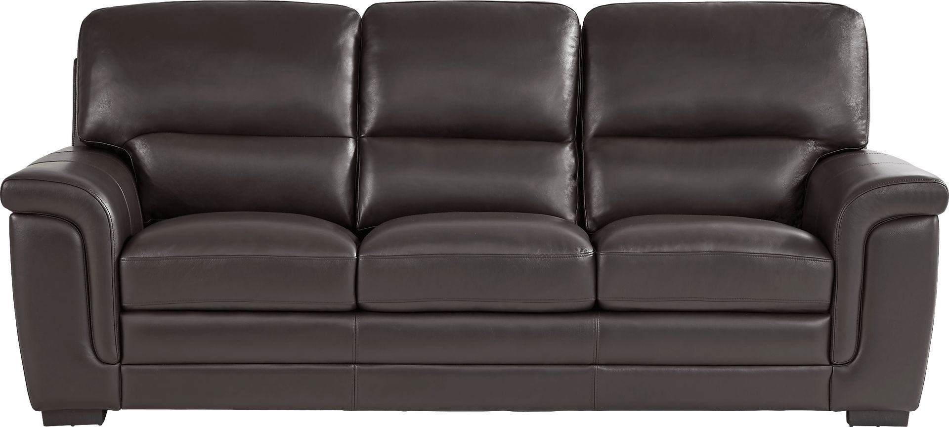 The simple design and warm, relaxed feel of the Ashbury Place collection is the perfect complement to any living room aesthetic. Upholstered in top grain leather where the body touches, this contemporary sofa features padded arms and outside backs with attached seat cushions for a luxurious feel. Elegant curves bring sophisticated style to the arms, elevating the overall appearance and giving your entire room a sense of artful intimacy. Top grain leather where the body touches, polyurethane sides & backs.