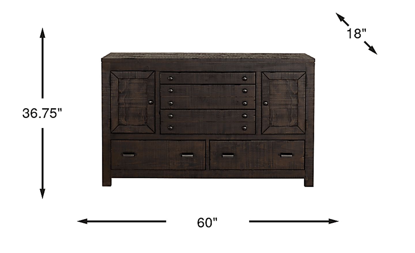 Bring the warmth of a cabin retreat in your home when you have the Asher dresser. Crafted of solid pine, five variously sized drawers and two cabinets (including one adjustable shelf behind each cabinet door) provide plenty of room for all types of clothing and accessories. The warm hand-distressed coffee brown finish is exceptional, providing a stylish rustic transitional style that only looks better with age.