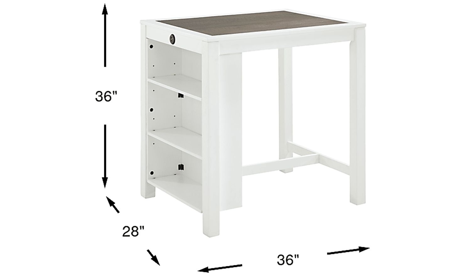 Relaxed, versatile and ready for guests at a moment's notice, the Asheville Heights dining table brings form, fun and function in equal measure. This contemporary counter height piece includes three storage shelves and a dual USB-A and USB-C charging port on the front - ideal for topping off electronic devices. Crafted with hardwood solids in a white finish, this table features a contrasting top in a brown finish.