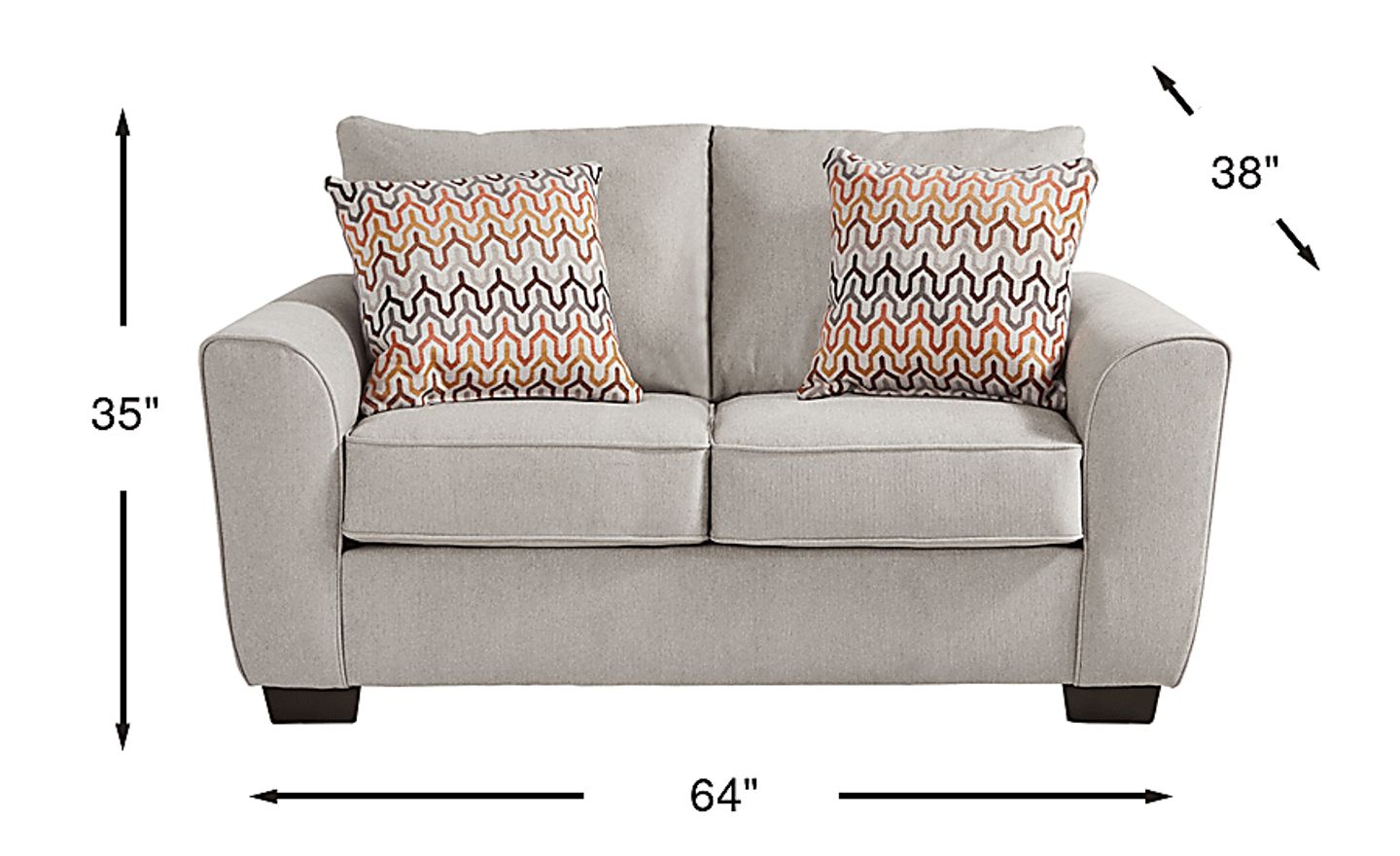 Sublime style harmonizes with comforting familiarity in the Ashland loveseat's blend of distinctive lines and soothing textures. Pillow-style back cushions and a pair of rounded wedge arms define this traditional silhouette in woven gray fabric. Welted seams trace each arm and reversible seat cushion, adding subtle definition to the soft outline. A set of dark block legs finish the look with a touch of contrast. Upholstery: 100% polyester.