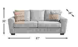 Sublime style harmonizes with comforting familiarity in the Ashland sofa's blend of distinctive lines and soothing textures. Pillow-style back cushions and a pair of rounded wedge arms define this traditional silhouette in woven gray fabric. Welted seams trace each arm and reversible seat cushion, adding subtle definition to the soft outline. A set of dark block legs finish the look with a touch of contrast. Upholstery: 100% polyester.