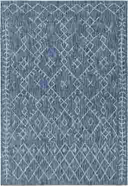 Furnish your space with the fresh and unique appeal of the Ashlyn rug. With a unique pattern inspired by rugs from around the globe, this is a piece sure to stand out in any space. The smooth denim color adds a calming effect to your space and the highly durable material can withstand even the highest traffic areas of your home or patio. 100% Polypropylene.