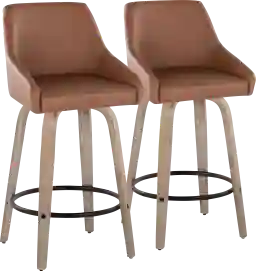 Elegant and simple, the Ashlynd III Camel Swivel Counter Height Stool, Set of 2 will furnish any eating area in style. Featuring sleek bentwood legs and a comfortable padded faux leather upholstered seat, the Ashlynd will elevate any space with its satisfying transitional design. Available in a variety of upholstery colors and finishes, choose the one that fits your space best. Customer assembly required.