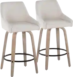 Elegant and simple, the Ashlynd III Cream Swivel Counter Height Stool, Set of 2 will furnish any eating area in style. Featuring sleek bentwood legs and a comfortable padded upholstered fabric seat, the Ashlynd will elevate any space with its satisfying transitional design. Available in a variety of upholstery colors and finishes, choose the one that fits your space best. Customer assembly required.