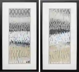 The Asoleado is a set of two abstract images that have been double matted and finished under glass, in a sleek black frame. Customer assembly is required.