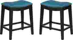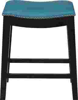 The Aspasia counter height stools add a characteristic saddle seat that gives visual interest and physical comfort. The seat color gives a beautiful contrast to the off black legs. The faux leather and vintage stud detailing enhance this classic style with a little bit of flair that pairs nicely in a downstairs game room or under a marble eat-in counter. Sit in comfort and style, with Aspasia. Customer assembly is required.